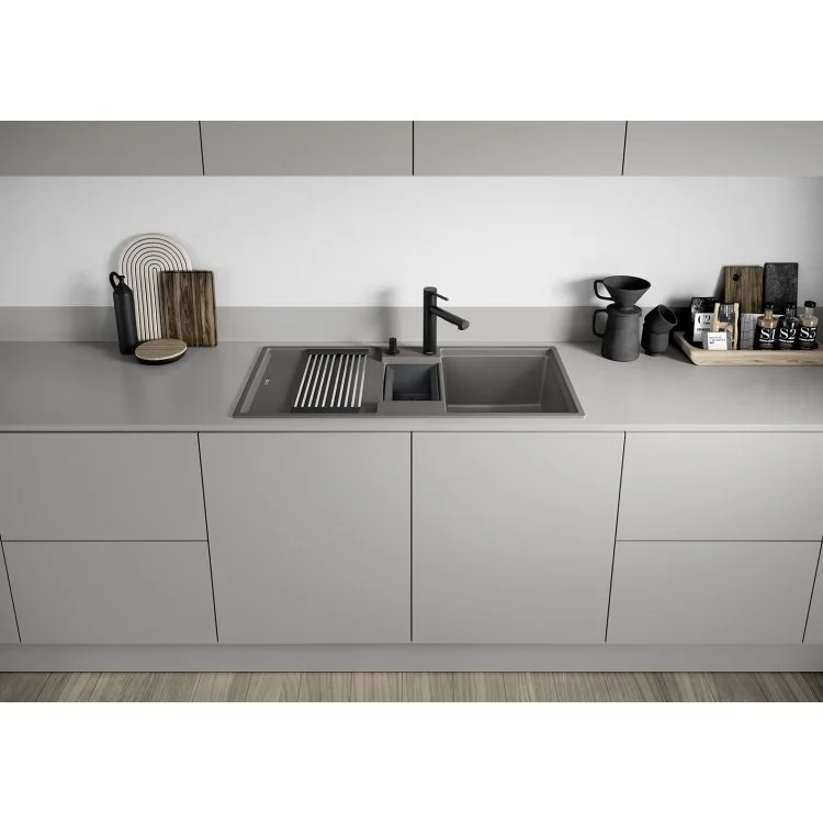 Moderna sudopera u prelepim Silgranit bojama sa proširenom funkcionalnošću. Visok nivo komfora zahvaljujući XL koritom sa praktičnim odvodom i jednsotavnom površinom za ceđenje. Multifunkcionalna ADIRA rešetka je uključena u isporuku i može se koristiti za kreiranje novog nivoa u koritu ili kao površina za ceđenje. Priložena inox cediljka savršeno se uklapa u sekundarno korito i odlična je za pripremne zadatke s vodom.
