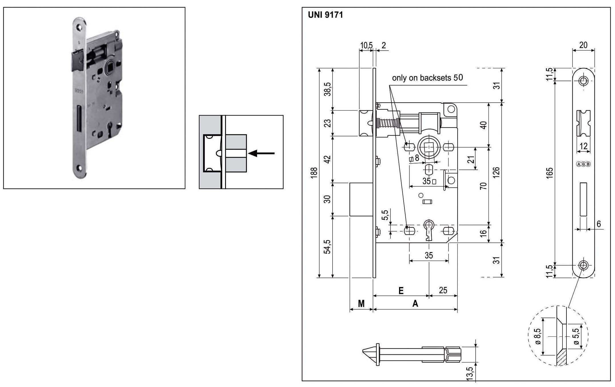 AGB Picollo brava sa centrom 70mm za sobna vrata/ormare. Ovalna ili kvadratna čeona ploča 20mm. Dubina (backset) 40, 45, 50mm.