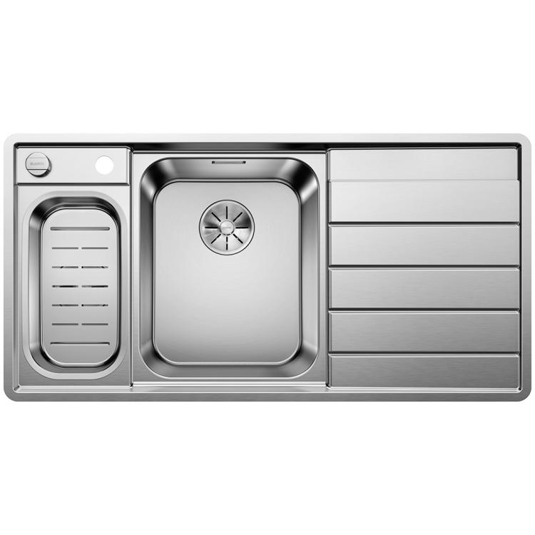 BLANCO AXIS III 6 S-IF je sudopera koja će se lako uklopiti u veliki broj kuhinja svojim jasnim linijama i praktičnim oblikom. Odgovara kuhinjskom ormariću standardnih dimenzija, od 60 cm i poseduje prostrano korito + manje pomoćno korito i praktičan oceđivač sa desne strane. Ova sudopera je dubine od 190 mm i ugrađuje se u ravni sa radnom pločom (više o načinima ugradnje sudopera možete pročitati ovde ). Sudopera dolazi sa daljinskim podizačem čepa što je čini vrlo praktičnom jer bez zavlačenja ruke u sudoperu možete otvoriti ili zatvoriti slivnik korišćenjem dugmeta na polici sudopere. Takođe se dobija inox posudica za ceđenje koja savršeno odgovara pomoćnom koritu. Saznaj više informacija o BLANCO INOX materijalu ovde .