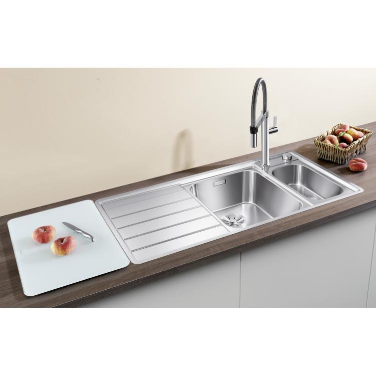 BLANCO AXIS III 6 S-IF je sudopera koja će se lako uklopiti u veliki broj kuhinja svojim jasnim linijama i praktičnim oblikom. Odgovara kuhinjskom ormariću standardnih dimenzija, od 60 cm i poseduje prostrano korito + manje pomoćno korito i praktičan oceđivač. Ova sudopera je dubine od 190 mm i ugrađuje se u ravni sa radnom pločom (više o načinima ugradnje sudopera možete pročitati ovde ). Sudopera dolazi sa daljinskim podizačem čepa što je čini vrlo praktičnom jer bez zavlačenja ruke u sudoperu možete otvoriti ili zatvoriti slivnik korišćenjem dugmeta na polici sudopere. Takođe se dobija inox posudica za ceđenje koja savršeno odgovara pomoćnom koritu. Saznaj više informacija o BLANCO INOX materijalu ovde .