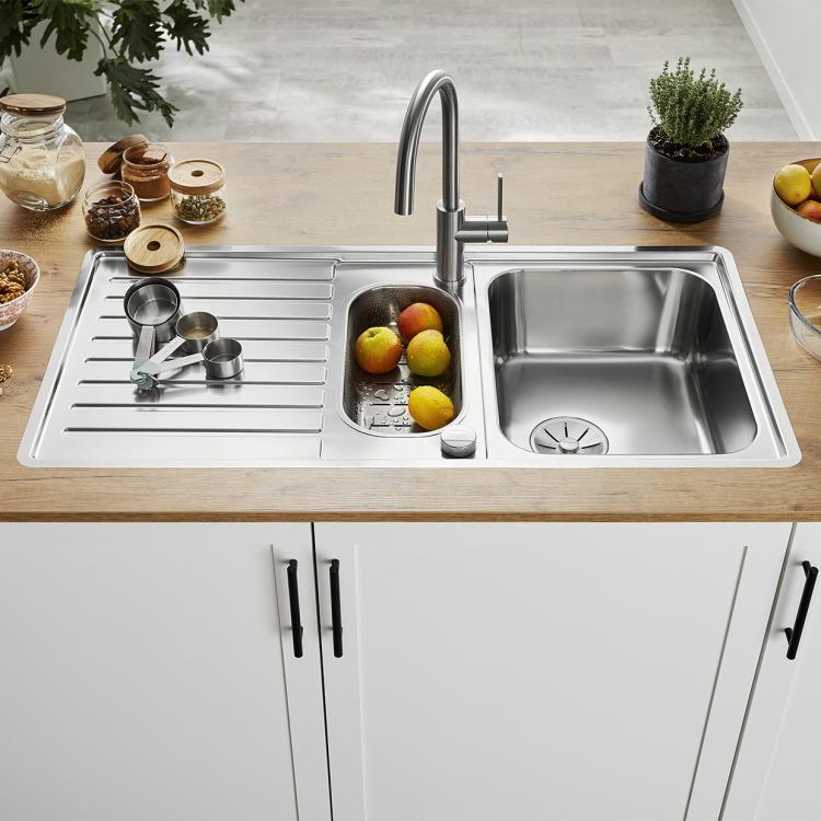 BLANCO CLASSIC Pro 6S-IF je sudopera koja će se lako uklopiti u veliki broj kuhinja svojim jasnim linijama i praktičnim oblikom. Poseduje prostrano korito i pomoćno manje korito, kao i praktičan oceđivač. Revirzibilna je tako da oceđivač možete montirati sa one strane sa koje vam više odgovara. Ova sudopera je dubine od 185 mm (glavno korito) i ugrađuje se u ravni sa radnom pločom (više o načinima ugradnje sudopera možete pročitati ovde ). Sudopera dolazi sa inox posudicom za ceđenje koja može stojati u pomoćnom koritu ili poprečno na glavnom (slika 3). Takođe dolazi sa daljinskim podizačem čepa što je čini vrlo praktičnom jer bez zavlačenja ruke u sudoperu možete otvoriti ili zatvoriti slivnik korišćenjem dugmeta na polici sudopere. Saznaj više informacija o BLANCO INOX materijalu ovde .