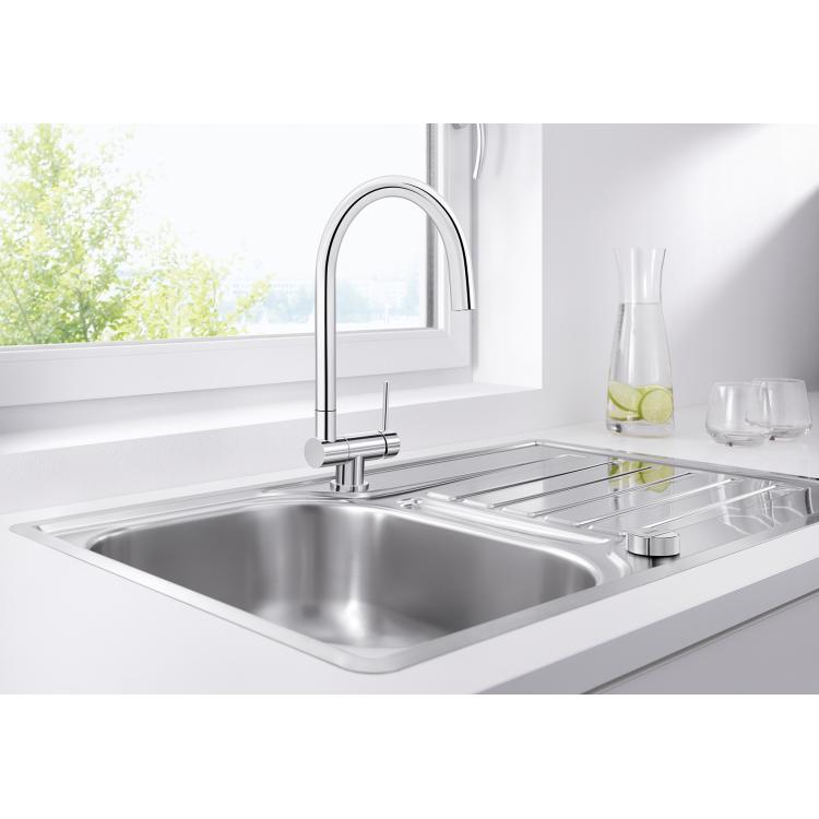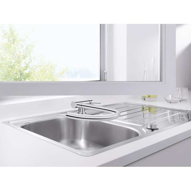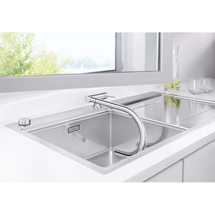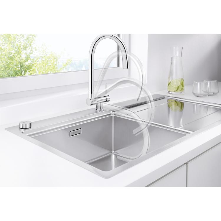 BLANCO kao stručnjak na mesto za sudoperu je mislio na sve moguće situacije, pa i da je sudopera pozicionirana ispod prozora. Prva pomisao u ovoj situaciji je kao otvoriti prozorsko krilo od slavine? Specijalno dizajnirane slavine za ispred prozora rešavaju ovaj probolem. I to u jednom potezu. Slavine BLANCO CORESSA-F u jednom potezu savijate na dole i tako omogućavate prozorskom krilu slobodan put. U zavisnosti da li ste levoruki ili desnoruki, možete birati ovaj model sa ručicom desnoj strani, ili isti model gde je ručica sa leve strane . Takođe, ovakav tip slavine je dostupan i u L obliku, za sve one koji vole takve slavine, BLANCO LARESSA-F .