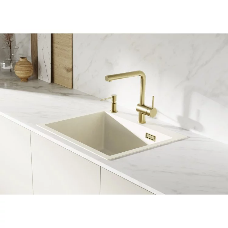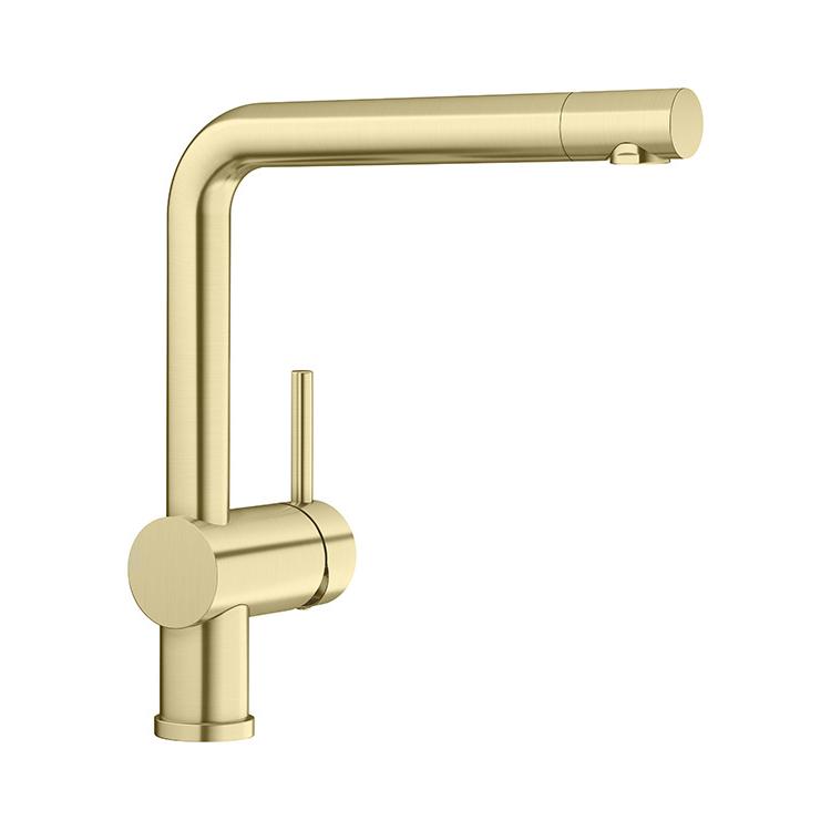 Ova slavina kombinuje čist, minimalistički dizajn sa vrhunskom tehnologijom, pružajući savršen balans između estetike i praktičnosti. PVD zlatno saten završna obrada – otporna na ogrebotine, habanje i koroziju. Izvlačni metalni tuš sa fleksibilnim crevom omogućava veću pokretljivost i preciznost. BLANCO LINUS-S je više od slavine – to je dizajnerski element koji se savršeno uklapa u moderne i klasične kuhinje, bilo da je uparena sa sudoperama od nerđajućeg čelika ili Silgranita.