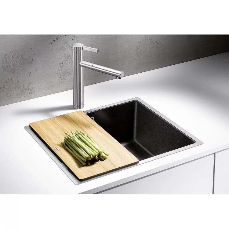 Elegante BLANCO sudopere iz porodice SUBLINE pravi su izbor za one koji žele funkcionalnost, estetiku i kvalitet u samom srcu svoje kuhinje. Ovaj model je standardnih dimenzija odličan za veći broj kuhinja. Ona se montira u ravni sa radnom pločom - pravnata gradnja (više o načinima ugradnji sudopera možete pročičtati OVDE ). Ivica sudopere je od INOXa što joj daje dodatnu šarmantnost i eleganciju. Dubina sudopere je 190 mm. Ovom modelu odgovara veliki broj BLANCO dodatnog pribora koji možete kupiti uz sudoperu, a koji će joj povećati funkcionalnost ali i estetiku. Istražite ih ispod. Saznaj više se o materijalu SILGRANIT® ovde , i otkrijte zašto je ovo najprodavaniji materijal granitnih sudopera u svetu.