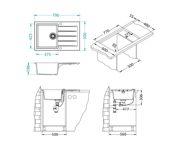 Kuhinjske sudopere CADIT su izrađene od mešavine materijala mlevenog kvarca 75-80% i polimerne smole(visoko kvalitetno akrilno vezivo). Ove sudopere se odlikuju izuzetno modernim dizajnom, čistim prirodnim linijama, te izuzetnom dubinom i veličinom posuda. Velika prednost sudopere je njena završna obrada koja je glatka na dodir što je čini izuzetno lakom i jednostavnom za čišćenje i održavanje. U zavisnosti od vaših očekivanja i želja, možete birati između 4 modela u 5 različitih boja granita. U sklopu sudopere se nalazi i POP up sifon koji omogućava daljinsko odvođenje vode iz sudopere. Skriveni preliv u sudoperi sprečava zaglavljivanje sunđera, a sami rubovi sudopere su tanki i estetski privlačni. Dodatna oprema: drvena daska za rezanje, roll up oceđivač Garancija na sudopere je 5 godina.