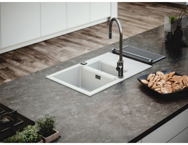 Kuhinjske sudopere CADIT su izrađene od mešavine materijala mlevenog kvarca 75-80% i polimerne smole(visoko kvalitetno akrilno vezivo). Ove sudopere se odlikuju izuzetno modernim dizajnom, čistim prirodnim linijama, te izuzetnom dubinom i veličinom posuda. Velika prednost sudopere je njena završna obrada koja je glatka na dodir što je čini izuzetno lakom i jednostavnom za čišćenje i održavanje. U zavisnosti od vaših očekivanja i želja, možete birati između 4 modela u 5 različitih boja granita. U sklopu sudopere se nalazi i POP up sifon koji omogućava daljinsko odvođenje vode iz sudopere. Skriveni preliv u sudoperi sprečava zaglavljivanje sunđera, a sami rubovi sudopere su tanki i estetski privlačni. Dodatna oprema: drvena daska za rezanje, roll up oceđivač posuda za oceđivanje Garancija na sudopere je 5 godina.