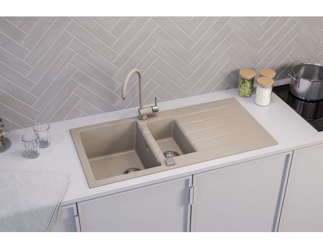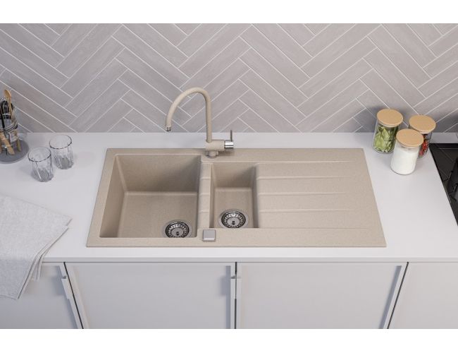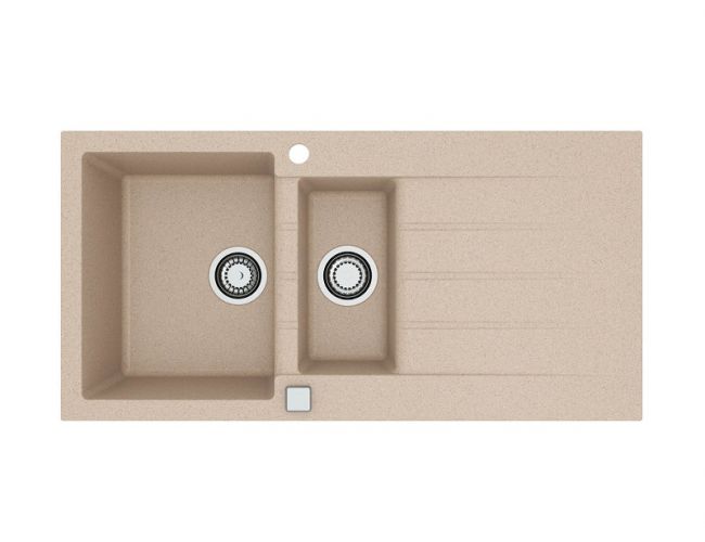 Kuhinjske sudopere CADIT su izrađene od mešavine materijala mlevenog kvarca 75-80% i polimerne smole (visoko kvalitetno akrilno vezivo). Ove sudopere se odlikuju izuzetno modernim dizajnom, čistim prirodnim linijama, te izuzetnom dubinom i veličinom posuda. Velika prednost sudopere je njena završna obrada koja je glatka na dodir što je čini izuzetno lakom i jednostavnom za čišćenje i održavanje. U zavisnosti od vaših očekivanja i želja, možete birati između 4 modela, u 5 različitih boja granita. U sklopu sudopere se nalazi i POP-up sifon koji omogućava daljinsko odvođenje vode iz sudopere. Skriveni preliv u sudoperi sprečava zaglavljivanje sunđera, a sami rubovi sudopere su tanki i estetski privlačni. Dodatna oprema: drvena daska za rezanje, roll up oceđivač posuda za oceđivanje Garancija na sudopere je 5 godina.