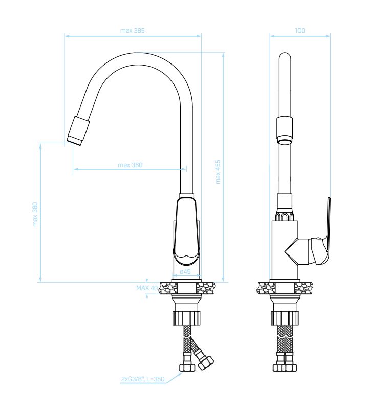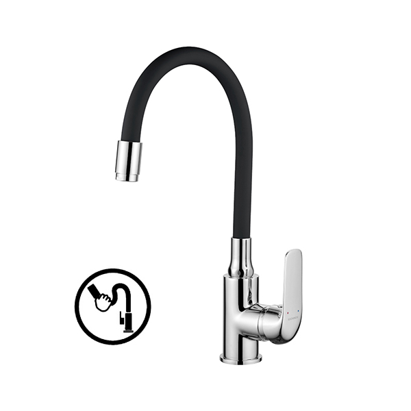 Laveo Elza slavina je kombinacija inox „tela“ i silikonskog creva koje je savitljivo i ono što je neobično u tome je što crevo zadržava oblik.