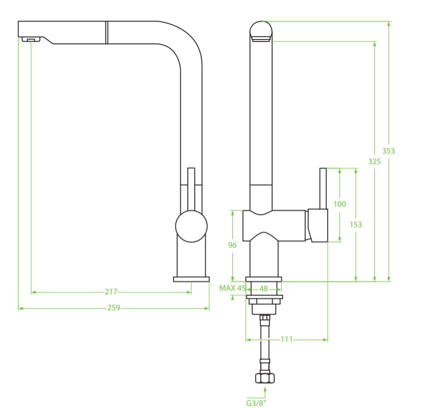 Laveo Luna sa tušem je slavina klasičnog oblika kao ćirilično slovo G. Ova slavina je nešto masivnija pa samim tim najbolje paše uz sudopere sa velikim koritom. Ova slavina dolazi u četiri boje modela a to su CRNA, SIVA, BEŽ, BELA i INOX.