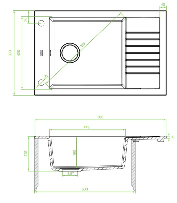 Granitna sudopera model Pionier je moderna sudopera sa izuzetno velikim i dubokim koritom i kratkim oceđivačem idealna za kuhinje svih dimenzija pri čemu zadržava svu funkcionalnost sudopera sa velikim oceđivačem. Brend Laveo nam konačno donosi granitne sudopere koje nam obezbeđuju odličan kvalitet uz veoma pristupačnu cenu.