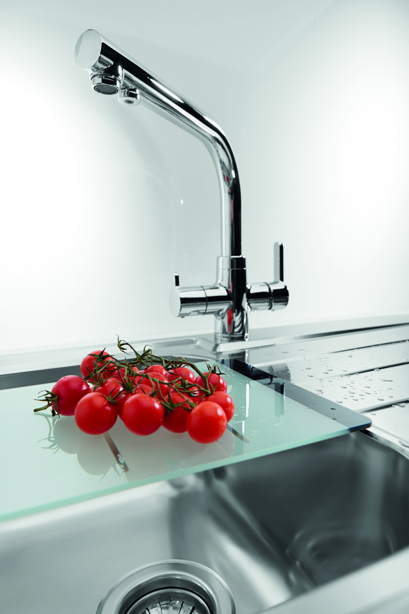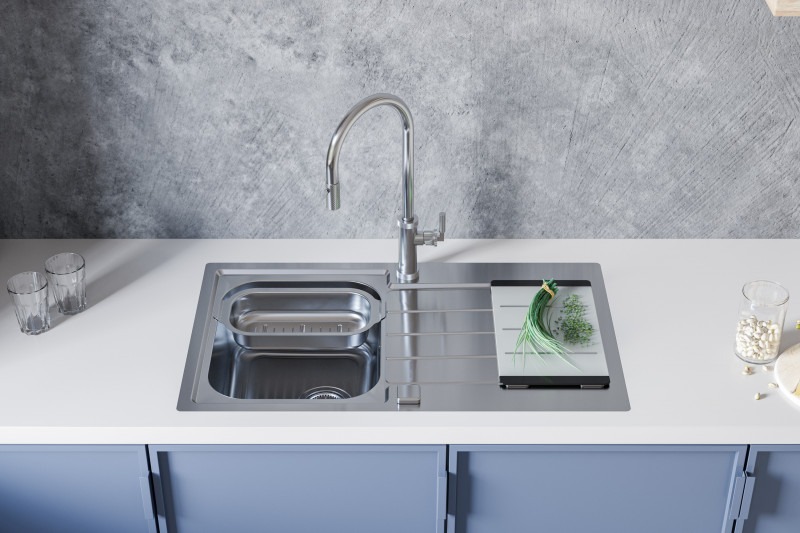 Dimenzije: 860 x 500 x 190 – I Dimenzije: 865 x 505 x 190 – FS Kuhinjske sudopere LINE MAXIM predstavljaju odličnu kombinaciju modernog dizajna i čistih linija, a izrađene su od nerđajućeg čelika (CrNi 18-10). Postoji široka lepeza dostupnih dodataka – velika i mala drvena daska za rezanje, staklena daska za seckanje, posuda za oceđivanje od inoxa, roll up oceđivač kao i razne varijante dozera za deterdžent. Dostupne su 8 različitih modela sa strukturom povšine SAT(satenski svilenkasti sjaj) . Velika prednost ovih sudopera je natprosečna dubina od 190mm sa debljinom lima 0,8 mm. Sudopera je univerzalna(može biti i leva i desna). Ove sudopere idu u garnituri sa sifonom. Garancija na sudopere je 5 godina. Dodatna oprema: Drvena daska za rezanje mala i velika Podmetač inox Roll up oceđivač Dozer za deterdžent PEAR I CALLAS CHR Staklena daska za rezanje