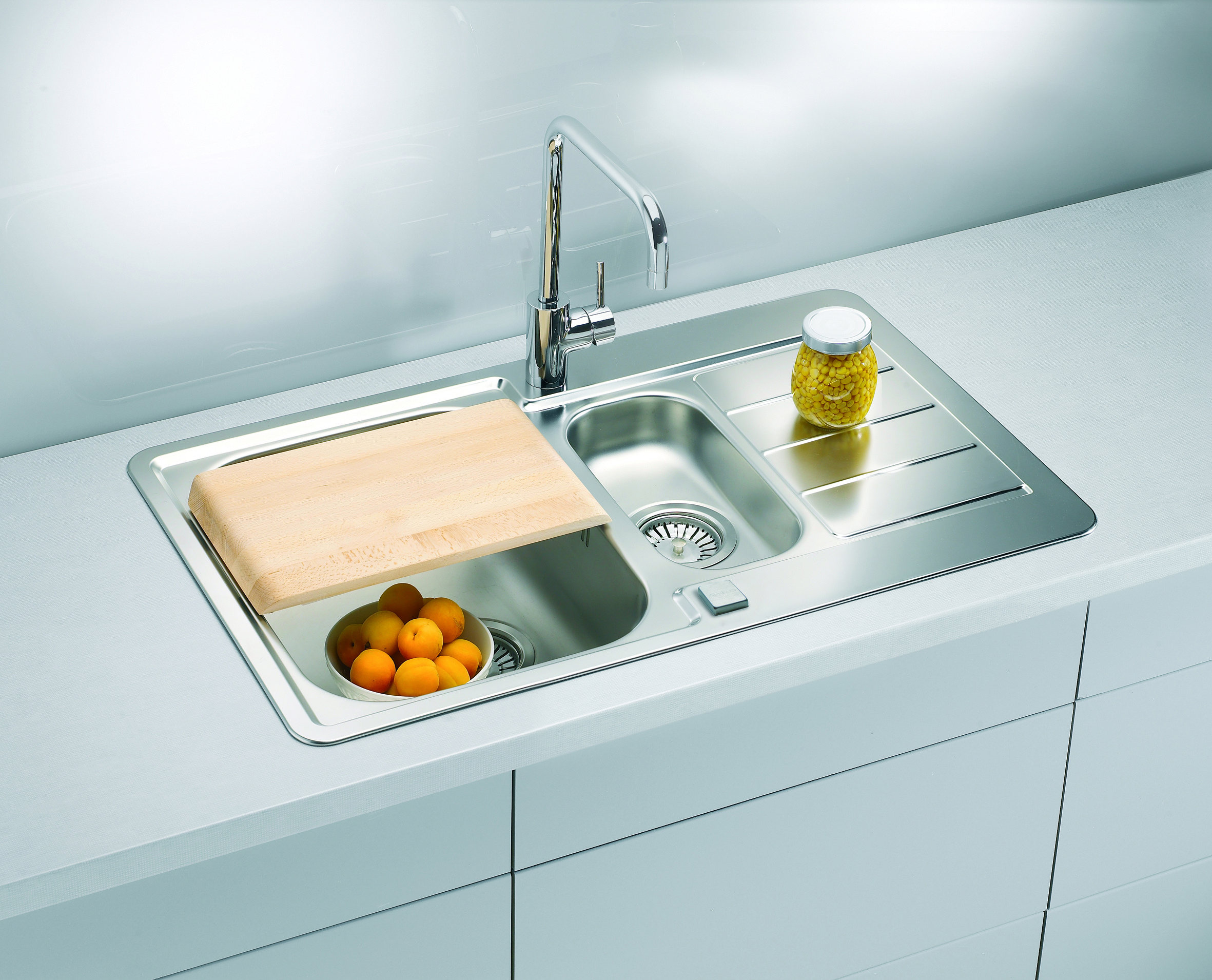 Dimenzije: 790 x 500 x 190 – I Dimenzije: 795 x 505 x 190 – FS Kuhinjske sudopere LINE MAXIM predstavljaju odličnu kombinaciju modernog dizajna i čistih linija, a izrađene su od nerđajućeg čelika (CrNi 18-10). Postoji široka lepeza dostupnih dodataka – velika i mala drvena daska za rezanje, staklena daska za seckanje, posuda za oceđivanje od inoxa, roll up oceđivač kao i razne varijante dozera za deterdžent. Dostupne su 8 različitih modela sa strukturom povšine SAT(satenski svilenkasti sjaj) . Velika prednost ovih sudopera je natprosečna dubina od 190mm sa debljinom lima 0,8 mm. Sudopera je univerzalna(može biti i leva i desna). Ove sudopere idu u garnituri sa sifonom. Garancija na sudopere je 5 godina. Dodatna oprema: Drvena daska za rezanje mala i velika Podmetač inox Roll up oceđivač Dozer za deterdžent PEAR I CALLAS CHR Staklena daska za rezanje