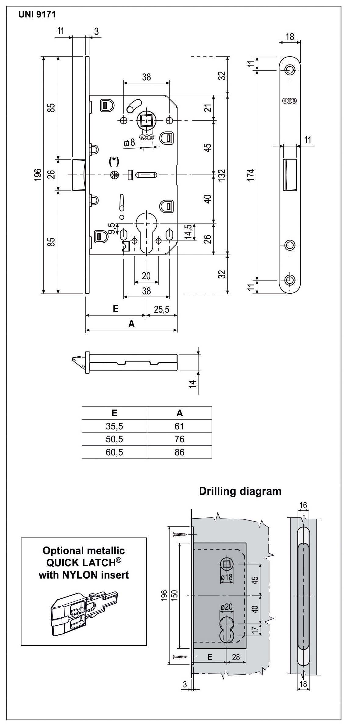 AGB Brava Mediana Evolution za cilindar (Centar 85mm) sa plastičnom (tiha) jezikom. Ovalna čeona ploča 18mm. Backset 50.5 ili 60.5 mm.