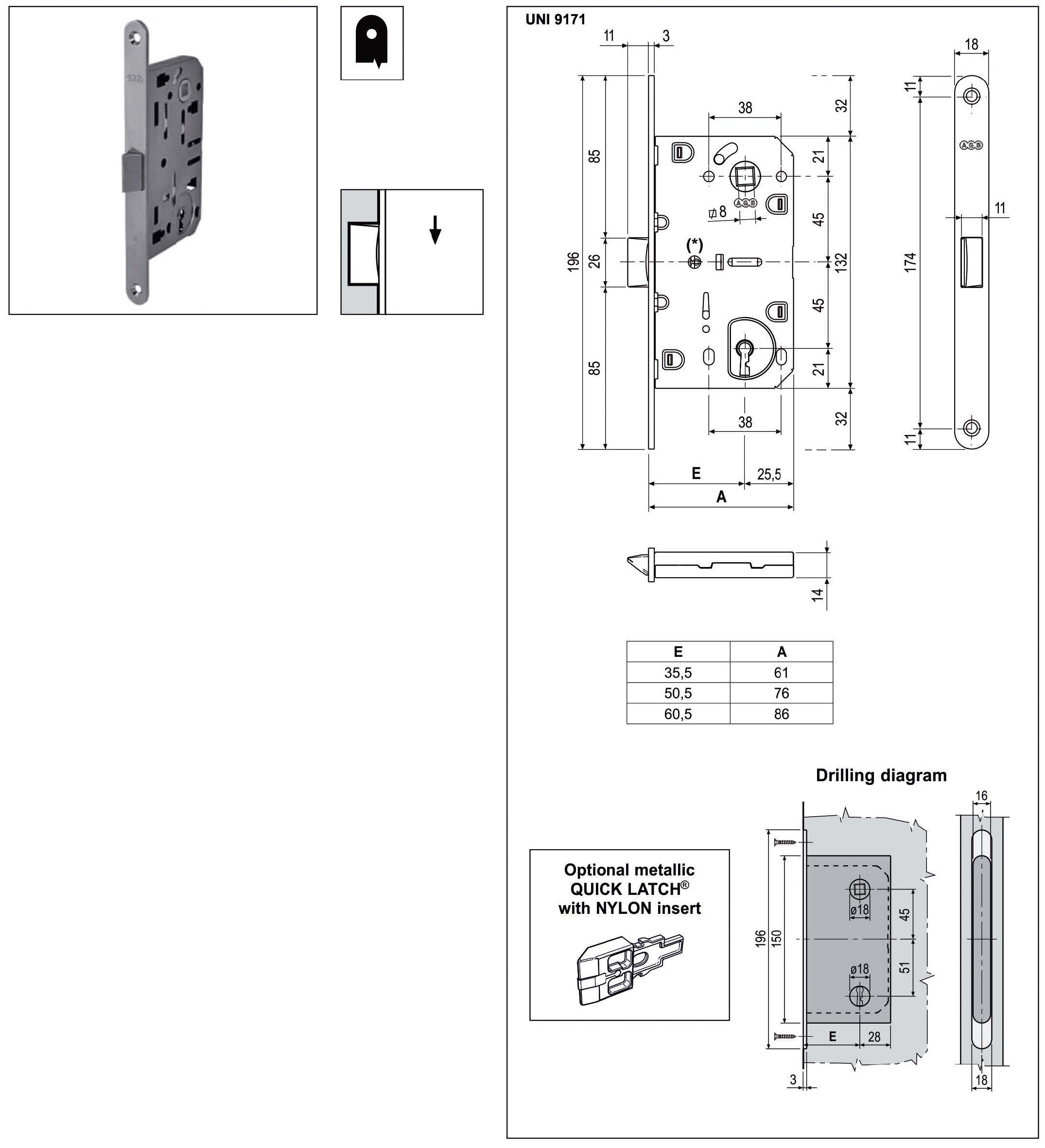 AGB Brava Mediana Evolution za kupatilo (Centar 96mm) sa plastičnom (tiha) jezikom. Ovalna čeona ploča 18mm. Backset 50.5 ili 60.5 mm.