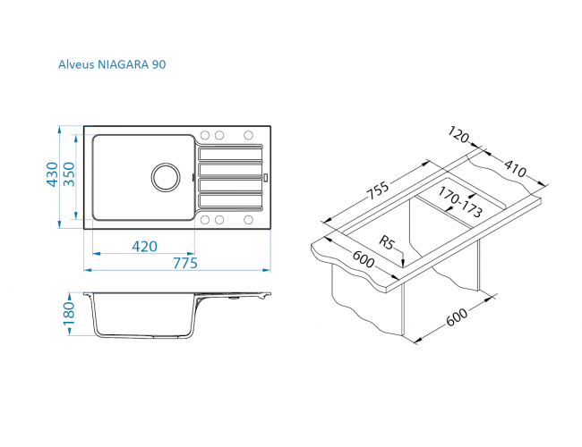 Kuhinjske sudopere NIAGARA su izrađene od mešavine materijala mlevenog kvarca 75-80% i polimerne smole (visoko kvalitetno akrilno vezivo). Ove sudopere se odlikuje odličnim odnosom cene i kvaliteta, praktičnošću, različitim oblicima, te jednostavnošću. Velika prednost ovih sudopera je njihova završna obrada koja je glatka na dodir, što je čini izuzetno lakom i jednostavnom za čišćenje i održavanje, ali treba istaći da sama dubina, odnosno širina posude ove sudopere daje mogućnost za pranje većeg posuđa. Niagara 90 nema izbušene rupe na sebi za slavinu ili dozer, ali postoje pripremne rupe za bušenje, što Vam daje široki spektar mogućnosti da prilagodite Vašu sudoperu onako kako Vama odgovara! Ovaj model možete birati u 3 različite boje granita (bela, bež i crna). Sudopera se isporučuje sa klasičan sifonom za granitne sudopere. Garancija na sudoperu je 5 godina.