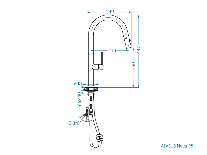 Alveus slavine za kuhinju su tehnološki sofisticirane i dolaze u različitim oblicima te dopunjuju kako tradicionalne tako i moderne kuhinje. Brojne varijante u pogledu ugradnje, rada i završne obrade površine omogućavaju mnoštvo kombinacija. Slavina Nova – PS je slavina sa opcijom izvlačnog creva i tuša, a u crnoj matiranoj verziji sa odgovarajućom sudoperom daje neprevaziđen izgled Vašoj kuhinji. Sve slavine imaju garanciju 5 godina i predviđene su za visok pritisak.