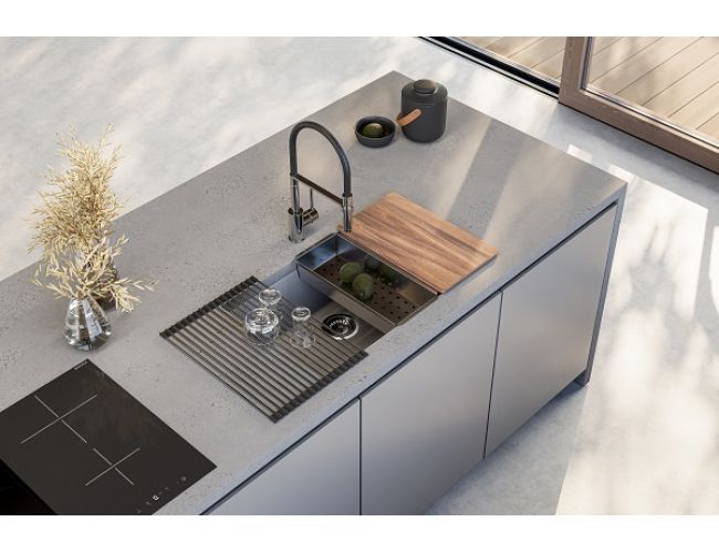 Alveus OMNI granitne sudopere sa uskom gornjom ivicom debljine 7 mm. Dostupno u šest nijansi boja: G11, G22, G55, G81, G91 i G90 (deep black). Tip ugradnje može biti: podgradni (U) i usadni (I). DIMENZIJA SUDOPERE 750 x 450 mm DIMENZIJA POSUDE 700 x 400 x 198 mm