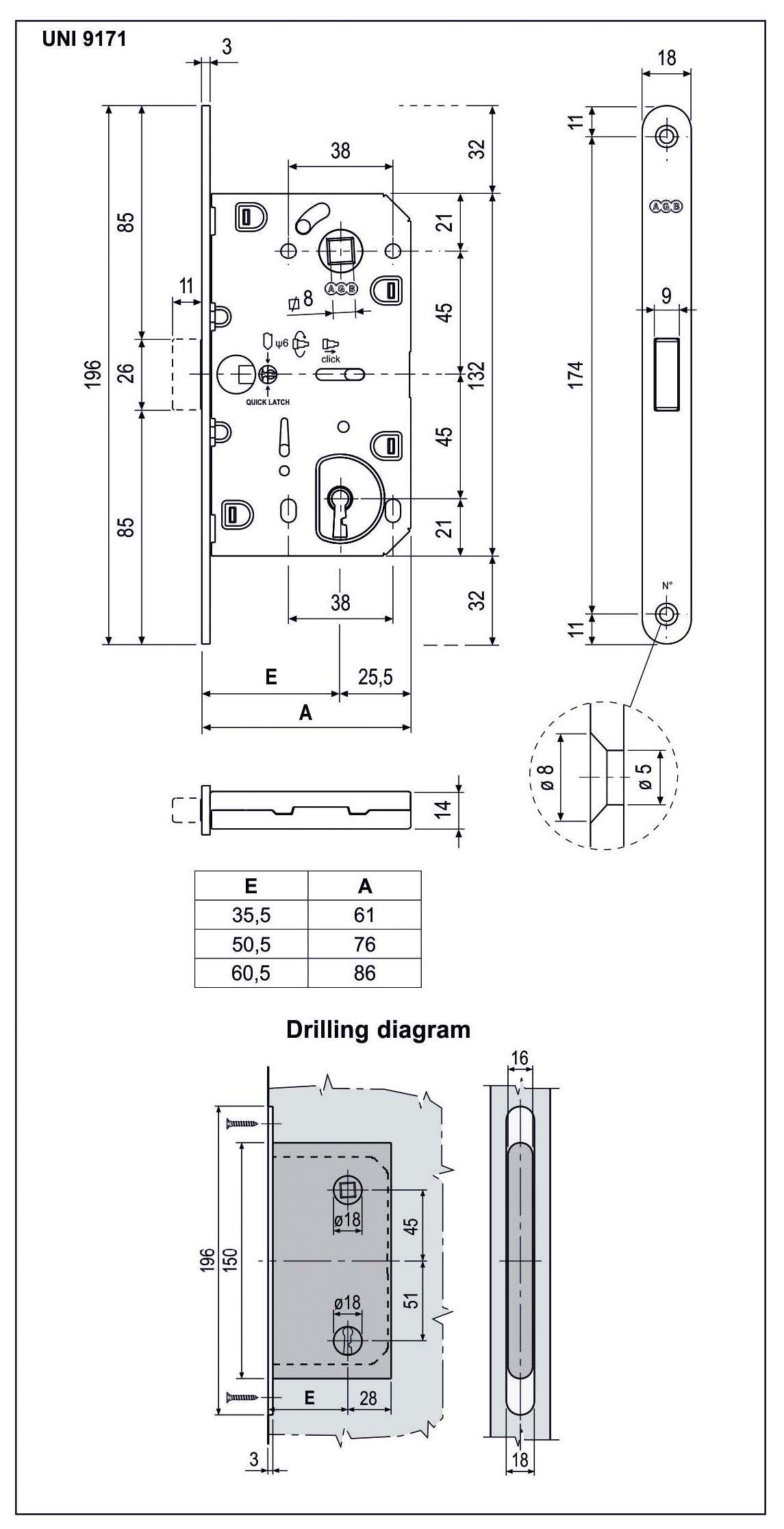 AGB Magnetna brava sa ključem (Centar 90mm). Ovalna čeona ploča 18mm. Može zameniti Mediana Evolution.