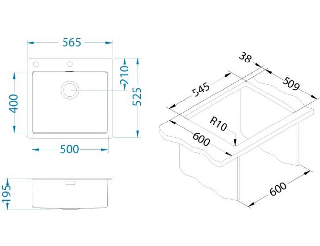 Kuhinjske sudopere PURE se odlikuju prefinjenim dizajnom, čistih linija i besprekornog sjaja, a izrađene su od plemenitog nerđajućeg čelika AISI 304 (CrNi 18-10). Dostupne su u 7 različitih modela sa strukturom površine KMB (satenska posuda, brušeni sjaj) . Sa natprosečnom dubinom do 205 mm, debljinom lima 1 mm, i radijusom od 15 mm, vaša kuhinja može imati veoma elegantan dizajn i buditi želju za neprestanim pranjem suđa. Velika prednost ovih sudopera je mogućnost F i S ugradnje, čime sudopera Pure postaje jedno sa kuhinjskim pultom. Načini ugradnje mogu biti: potpuno usadni(F) i površinsko usadni(S). Garancija na sudopere je 5 godina. Sudopere Pure se isporučuju sa sifonom Dimenzije: 565 x 525 x 195 Dodatna oprema: Drvena daska za rezanje Dozer PEAR ROLL up oceđivač Posuda za oceđivanje Staklena daska za rezanje