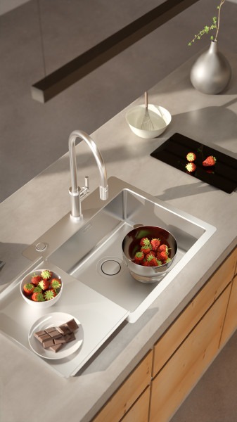 Kuhinjske sudopere PURE se odlikuju prefinjenim dizajnom, čistih linija i besprekornog sjaja, a izrađene su od plemenitog nerđajućeg čelika AISI 304 (CrNi 18-10). Dostupne su u 7 različitih modela sa strukturom povšine KMB (satenska posuda, brušeni sjaj) . Sa natprosečnom dubinom do 205 mm, debljinom lima 1 mm i radijusom od 15 mm, vaša kuhinja može imati veoma elegantan dizajn i buditi želju za neprestanim pranjem suđa. Velika prednost ovih sudopera je mogućnost F i S ugradnje, čime sudopera Pure postaje jedno sa kuhinjskim pultom. Uvek sofisticirani dizajn, čiste linije i besprekoran sjaj porodice PURE UP sudopera, nadogradili smo estetskim i funkcionalnim Push Pop Up sifonom za odvod. Načini ugradnje mogu biti: potpuno usadni(F) i površinsko usadni(S). Garancija na sudopere je 5 godina. Sudopere PURE UP idu sa sifonom. Dimenzije: 565 x 525 x 195 Dodatna oprema: Drvena daska za rezanje Dozer PEAR ROLL up oceđivač Posuda za oceđivanje Staklena daska za rezanje
