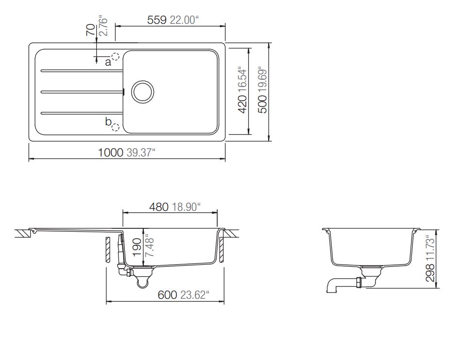 Granitna sudopera Formhaus D-100L je moderna sudopera sa velikim i dubokim koritom. Sastavni materijal proHygienic21 i zaštita CristaLite Plus, kao i joni srebra utkani u sam materijal, obezbedjuju antibakterijsko svojstvo sudopere.