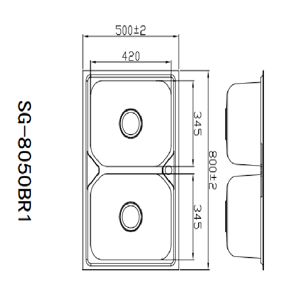 Sudopera od nerđajućeg čelika sa dve posude 80x50 cm, dubina 21 cm