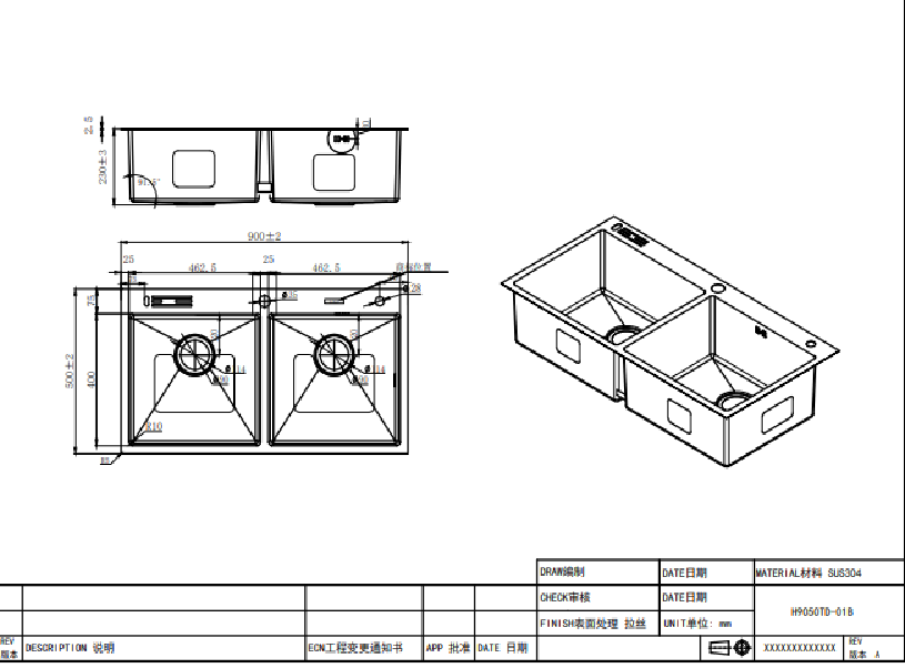 Sudopera od nerđajućeg čelika sa dve posude 80*50 cm, dubina 23 cm
