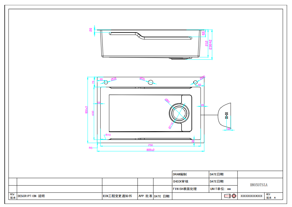 Sudopera od nerđajućeg čelika sa jednom posudom 80*50 cm, dubina 23 cm
