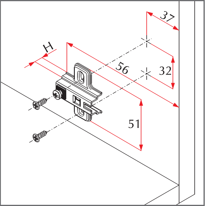 Metalno takaki šarke FGV sa uspravnom prilagodbom. Dostupne visine: H=0, H=2, H=4, H=6.