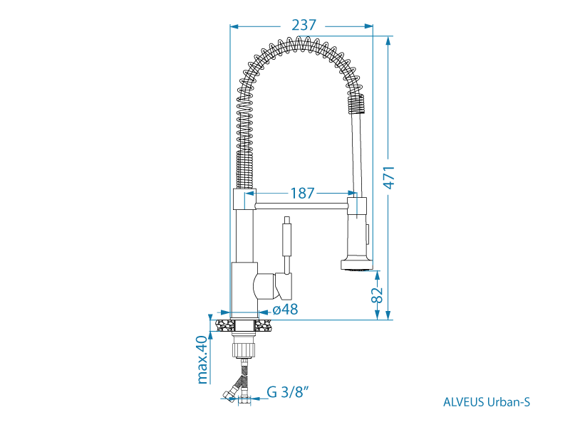 Alveus slavine za kuhinju su tehnološki sofisticirane i dolaze u različitim oblicima te dopunjuju kako tradicionalne tako i moderne kuhinje. Brojne varijante u pogledu ugradnje, rada i završne obrade površine omogućavaju mnoštvo kombinacija. Slavina Urban – S je slavina sa opcijom tuša, a u crnoj matiranoj verziji sa odgovarajućom sudoperom daje neprevaziđen izgled Vašoj kuhinji. Sve slavine imaju garanciju 5 godina i predviđene su za visok pritisak.