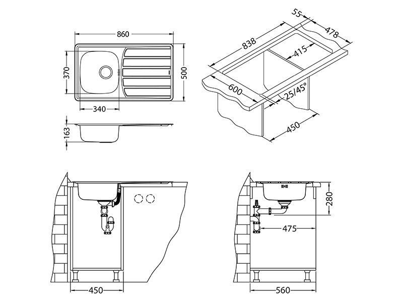 Dimenzije: 860 x 500 x 155